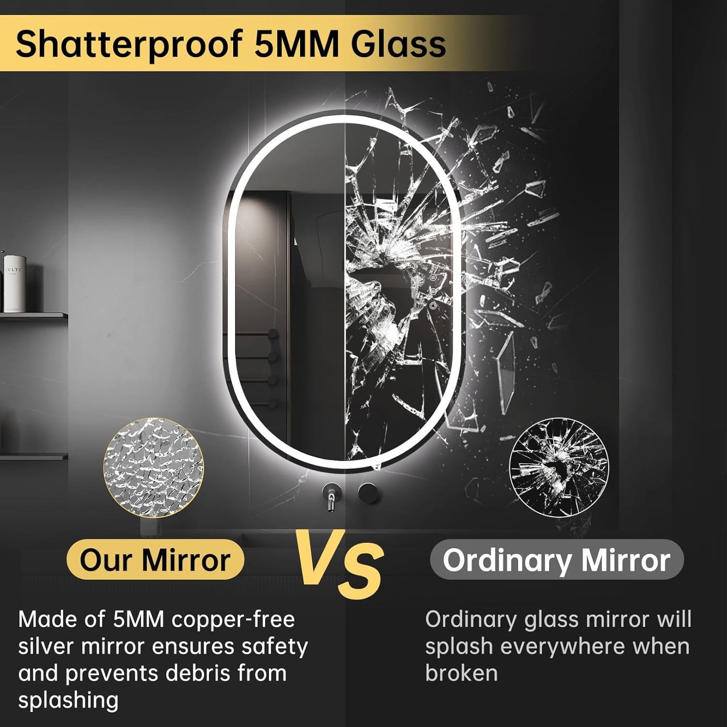 【Elevate Your Space】Add a touch of modern elegance to your home with our sleek and stylish oval LED bathroom mirror, designed to be a great addition to your home and enhance the ambiance of your space. This vanity mirror with lights for bathroom can also serve as a thoughtful gift for your friends or your families.