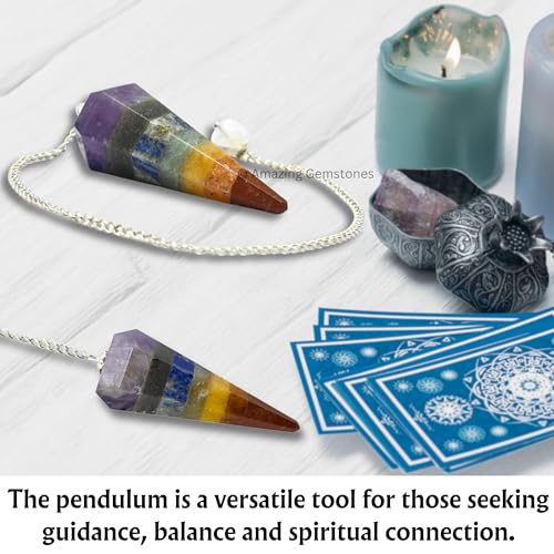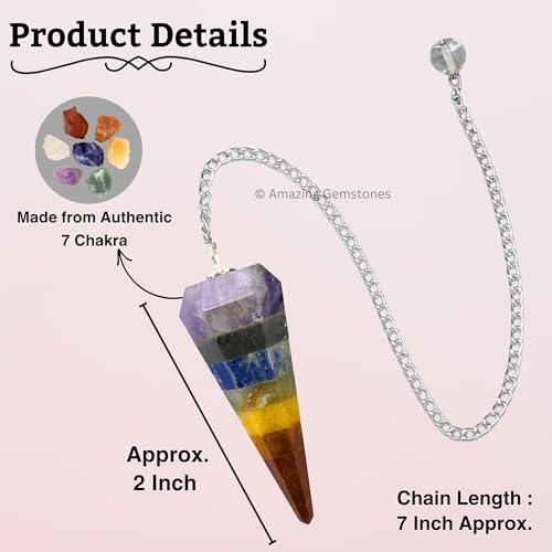 Amazing Gemstone 7 Chakra Bonded Crystal Pendulum for Divination – Dowsing Pendulum Necklace with Chain and Crystal Ball for Reiki Healing and Crystal Grid Meditation