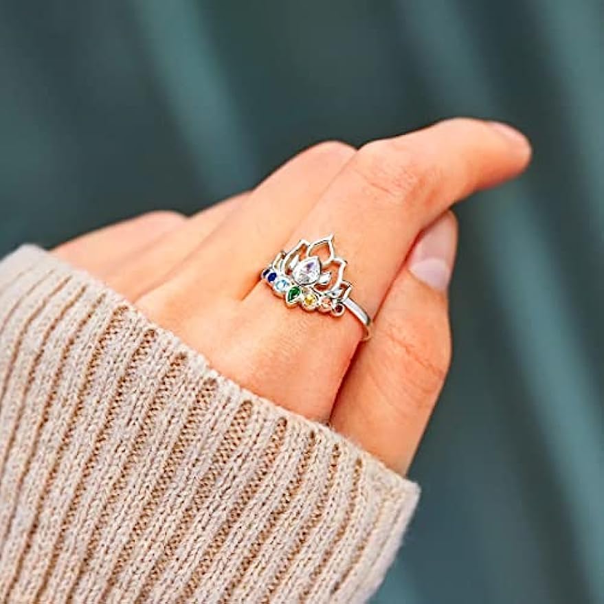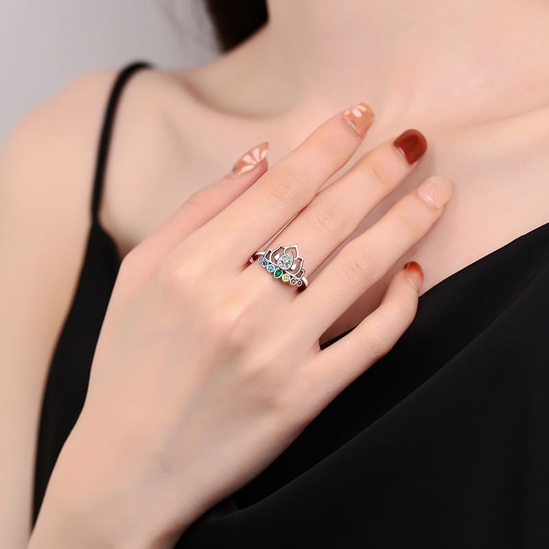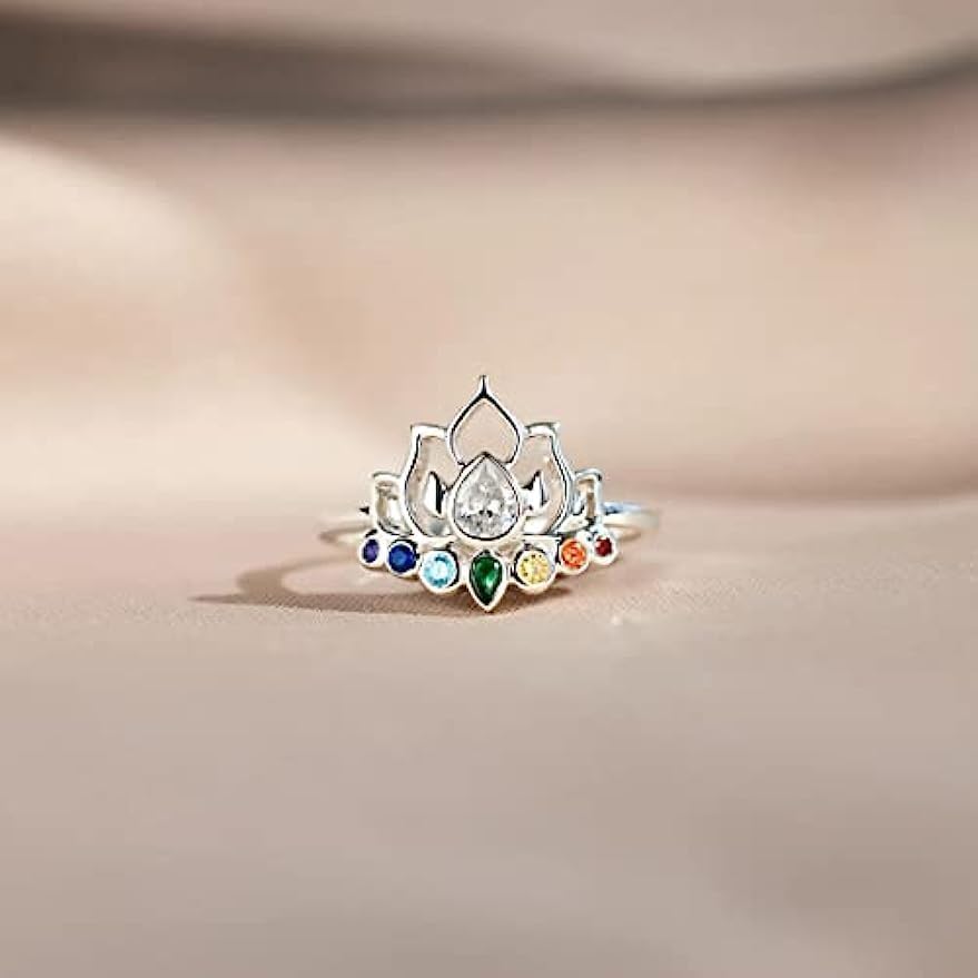 Lotus Flower Rings for Women, Boho Colorful 7 Chakras Yoga Rings, Adjustable Christmas Valentines Day Jewelry Gifts