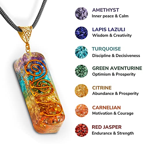 Orgone Chakra Necklace With Adjustable Cord – 7 Chakra Stone Healing pendant for Spiritual Healing