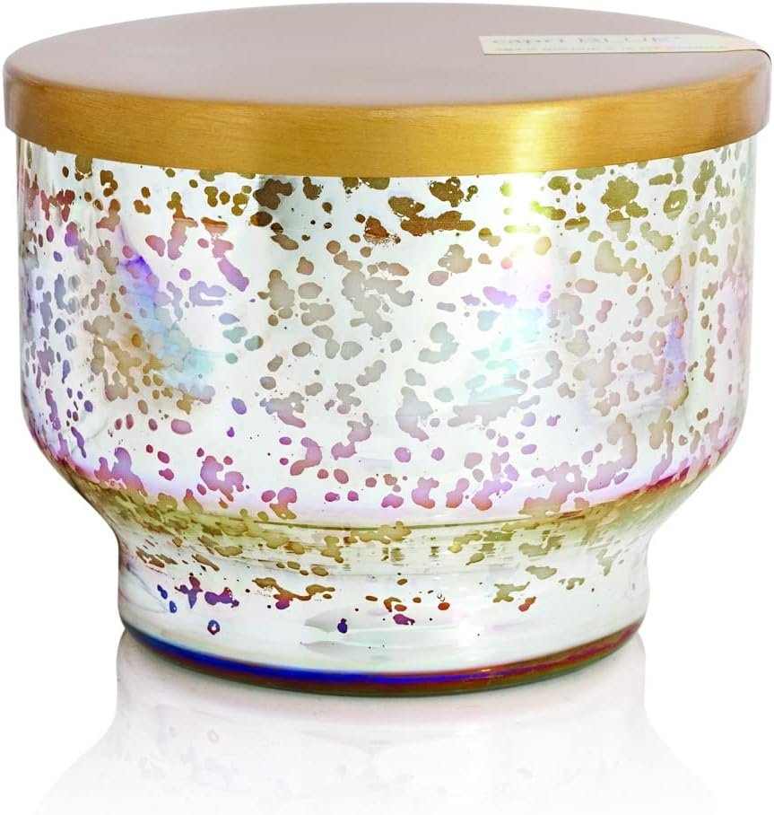 Iridescent Jar Candle: These 50-hour burn time, long lasting candles for men & women come in Capri’s upended 10-ounce jars with a timeless iridescent mercury finish, just waiting for their time to shine! Topped with a champagne gold lid, these Capri Blue candles are sure to be the talk of the party!