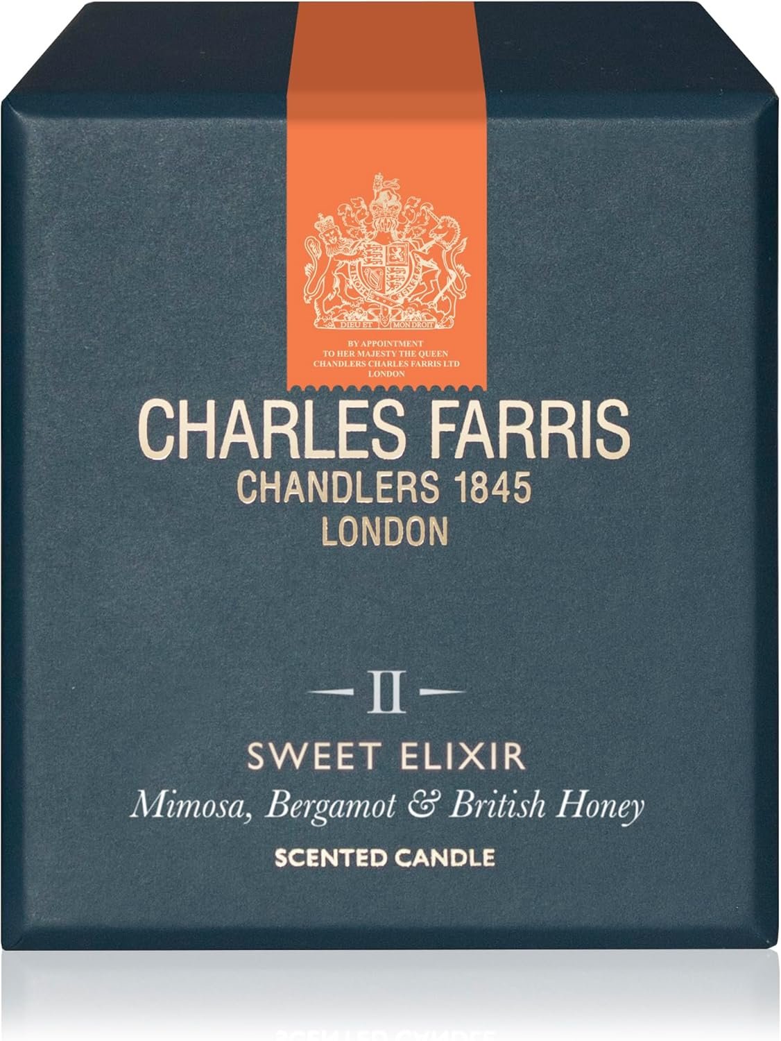 Charles Farris Luxury Scented Candle – Mimosa, Bergamot & British Honey – 50+ Hours Burn Time – Artisan Hand-Finished Glass Jar, Made in England (Sweet Elixir)