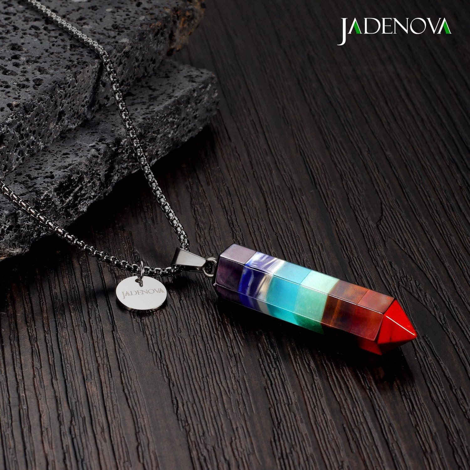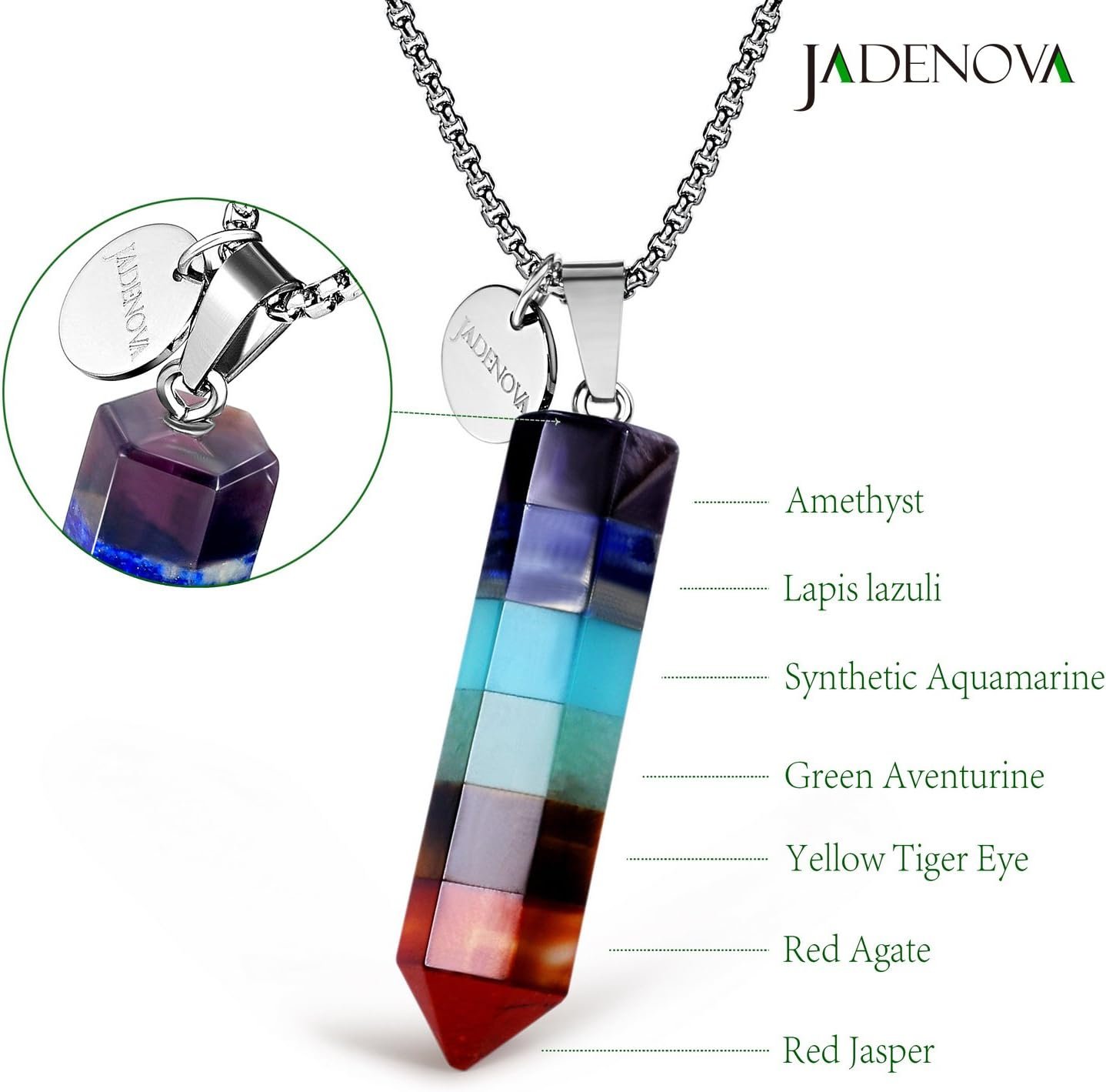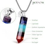 JADENOVA 7 Chakra Gemstone Pendant Necklace with Energy Healing Crystal Pendulum 18″ Stainless Steel Chain
