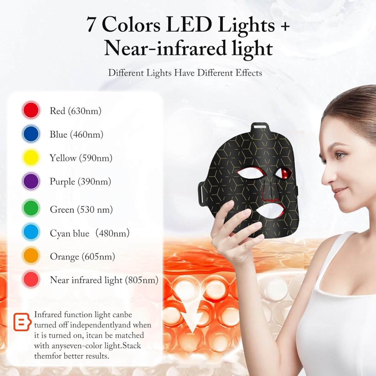 [Multicolor Light Therapy] Featuring 7 colored lights and near-infrared light, this mask targets various skin concerns, such as collagen production, skin brightening, and inflammation reduction