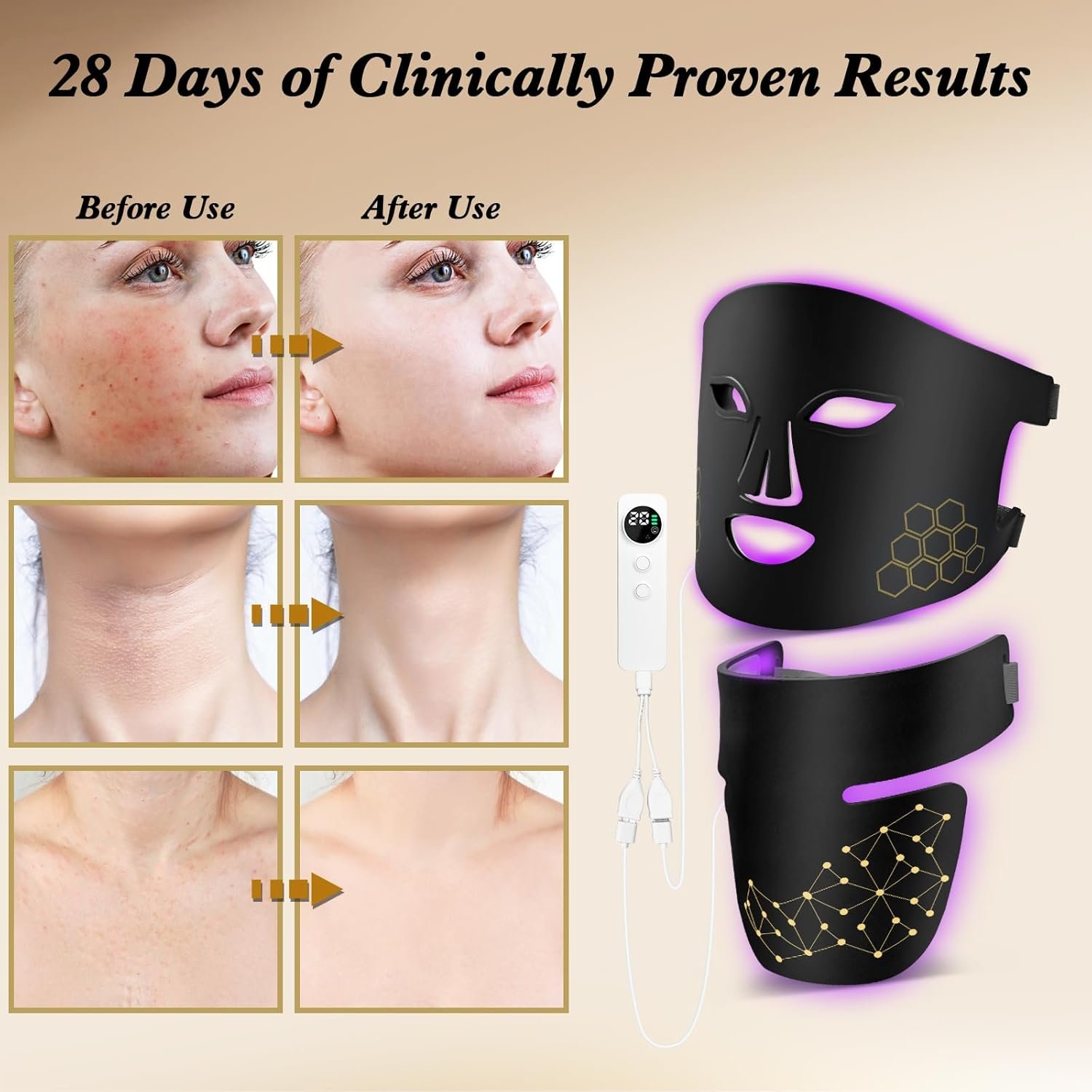 【Red Light Therapy for Face & Neck】Red light 660 nm and near-infrared 850 nm are the best combination wavelengths for light therapy. The light can cover the entire skin layer, penetrate the skin deeper than other lights, solve various skin problems, reduce wrinkles, keeping your skin elastic and youthful.