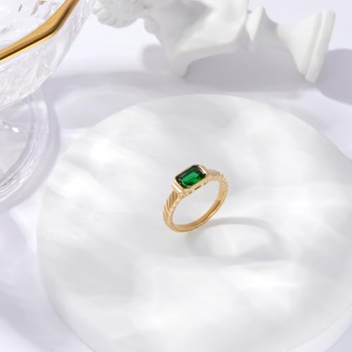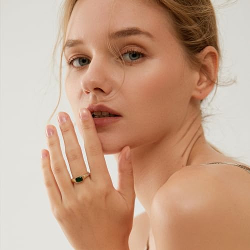 Gold Emerald Rings Gold Rings for Women Dainty Green Rings Cut Emerald Gemstones CZ Non Tarnish Gold Rings 14K Gold Plated Rings for Women Band Size 6/7/8/9