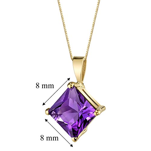 PEORA Solid 14K Yellow Amethyst Pendant for Women, 2 Carats Princess Cut 8mm, Genuine Gemstone Solitaire, Real Amethyst Necklace, February Birthstone Necklace, For Jewelry Gift & Everyday Wear