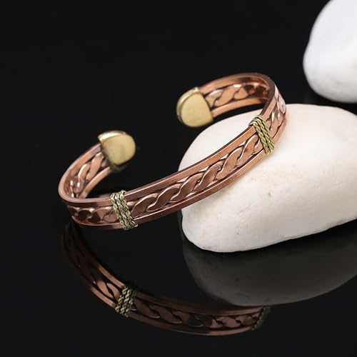 MATERIAL&PAIN RELIEF: This bracelet is pure copper. It was not coated, tinned or lacquered with any material. With this feature, pure copper helps for pain relief and stress relief. However, a patina may appear. If you don’t like this, you can paint it with clear nail polish.