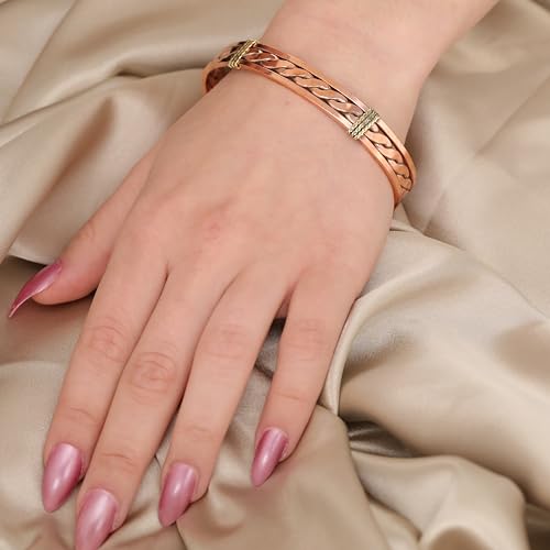 Handmade Elegant Copper Bracelet for Women – Pure Copper Bracelet for Pain Relief and Stress Relief – Adjustable Entwisted Copper Bracelet to Fit many Size Wrist (thick twisted)