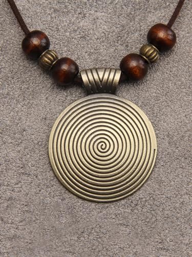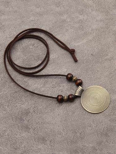 Long Necklaces for Women Boho Wooded Pendant Vintage Necklace Sweater Chain Necklace Handmade Jewelry