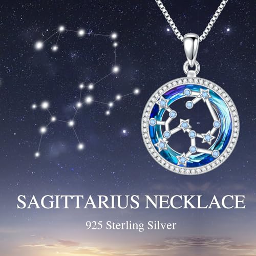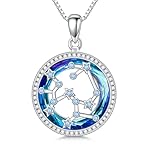 Zodiac Necklace for Women Sterling Silver Constellation Necklace Astrology Pendant Horoscope Necklace Crystal Zodiac Jewelry Gifts for Christmas Birthdays